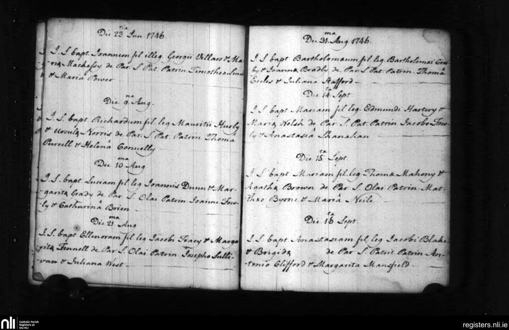 St. Patrick's and St. Olaf's, Waterford city; County of Waterford; Diocese of Waterford and Lismore. Baptisms, June 1746 to Sep. 1746