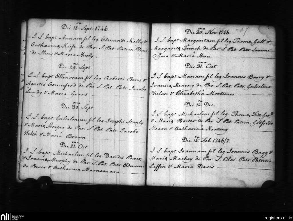 St. Patrick's and St. Olaf's, Waterford city; County of Waterford; Diocese of Waterford and Lismore. Baptisms, Sep. 1746 to Feb. 1747