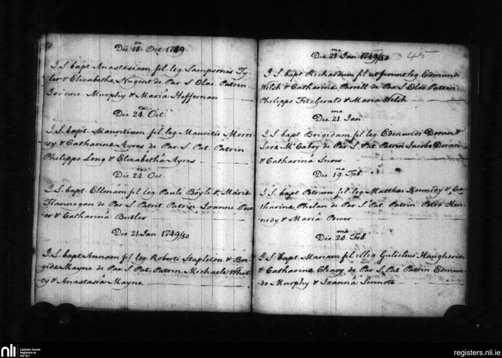 St. Patrick's and St. Olaf's, Waterford city; County of Waterford; Diocese of Waterford and Lismore. Baptisms, Oct. 1749 to Feb. 1750