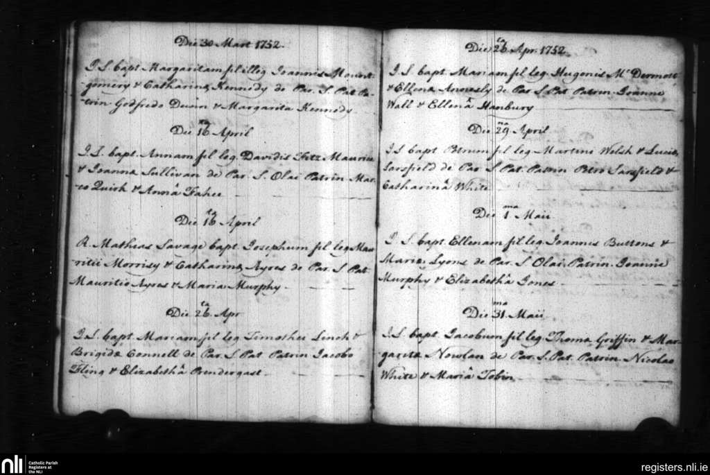 St. Patrick's and St. Olaf's, Waterford city; County of Waterford; Diocese of Waterford and Lismore. Baptisms, Mar. 1752 to May 1752