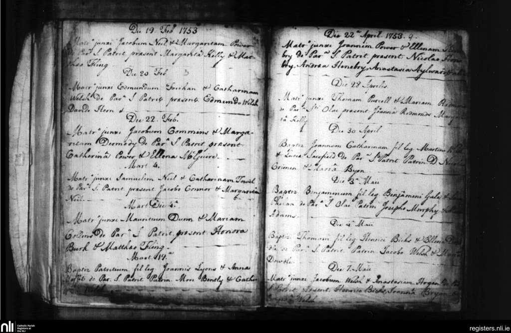 St. Patrick's and St. Olaf's, Waterford city; County of Waterford; Diocese of Waterford and Lismore. Baptisms, Marriages, Feb. 1753 to May 1753