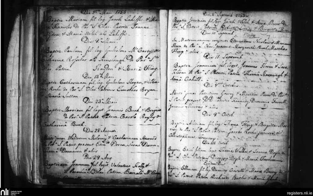St. Patrick's and St. Olaf's, Waterford city; County of Waterford; Diocese of Waterford and Lismore. Baptisms, Marriages, May 1753 to Oct. 1753