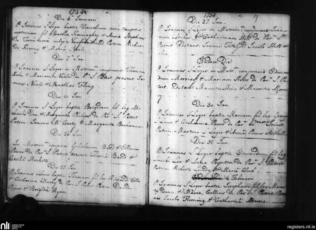 St. Patrick's and St. Olaf's, Waterford city; County of Waterford; Diocese of Waterford and Lismore. Baptisms, Marriages, Jan. 1754 to Feb. 1754