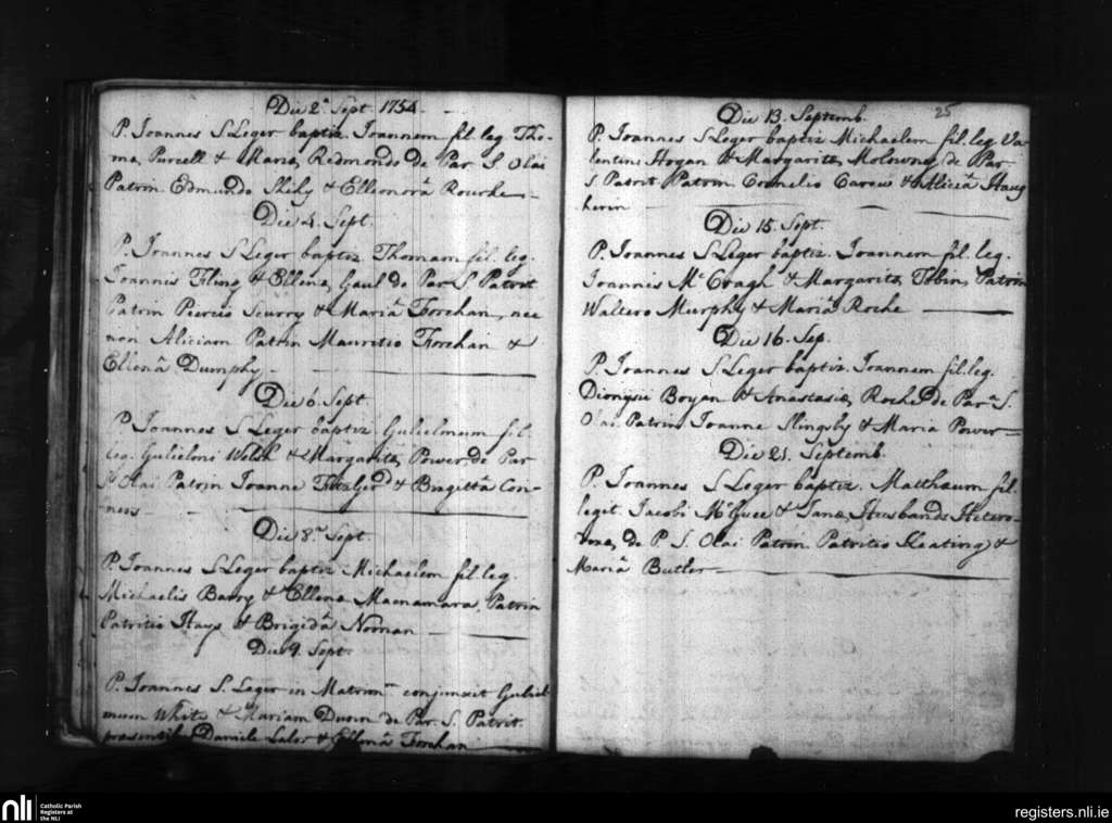 St. Patrick's and St. Olaf's, Waterford city; County of Waterford; Diocese of Waterford and Lismore. Baptisms, Marriages, Sep. 1754