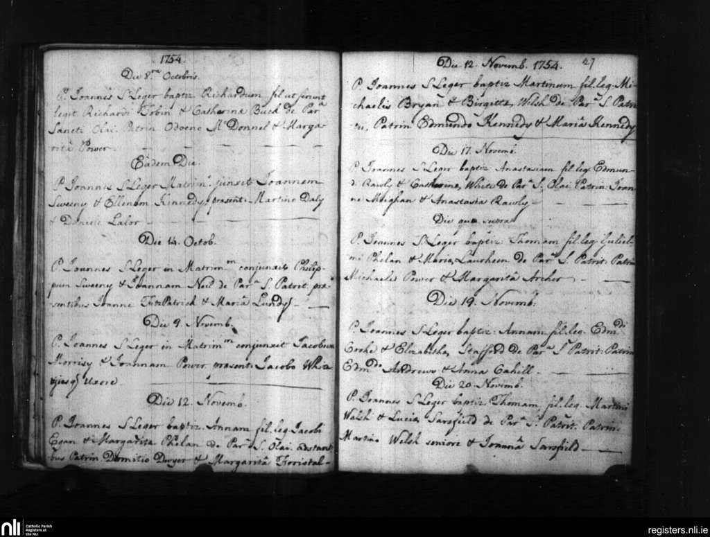St. Patrick's and St. Olaf's, Waterford city; County of Waterford; Diocese of Waterford and Lismore. Baptisms, Marriages, Oct. 1754 to Nov. 1754