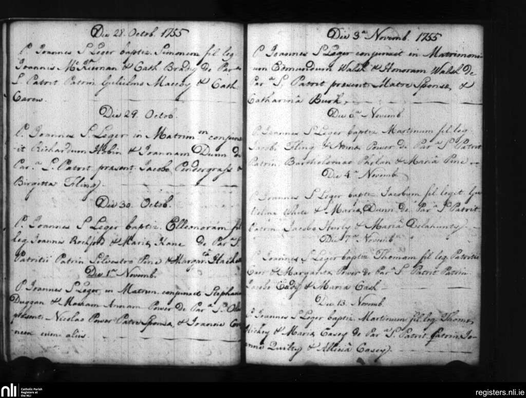 St. Patrick's and St. Olaf's, Waterford city; County of Waterford; Diocese of Waterford and Lismore. Baptisms, Marriages, Oct. 1755 to Nov. 1755