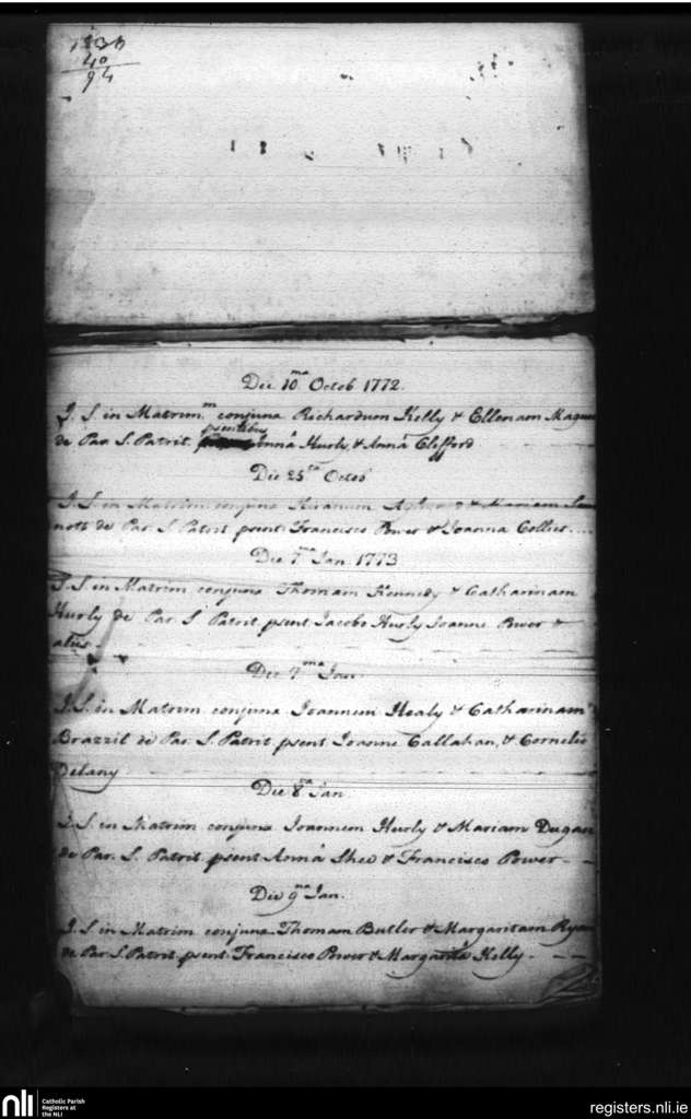 St. Patrick's and St. Olaf's, Waterford city; County of Waterford; Diocese of Waterford and Lismore. Marriages, Oct. 1772 to Jan. 1773