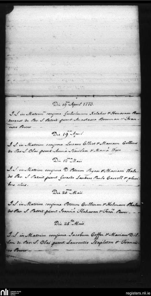 St. Patrick's and St. Olaf's, Waterford city; County of Waterford; Diocese of Waterford and Lismore. Marriages, Apr. 1773 to May 1773