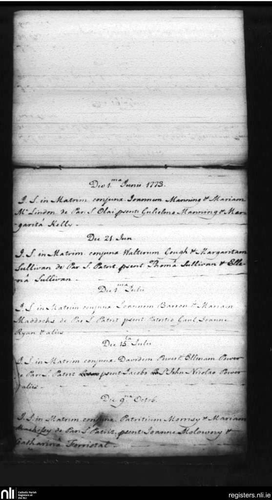 St. Patrick's and St. Olaf's, Waterford city; County of Waterford; Diocese of Waterford and Lismore. Marriages, June 1773 to Oct. 1773