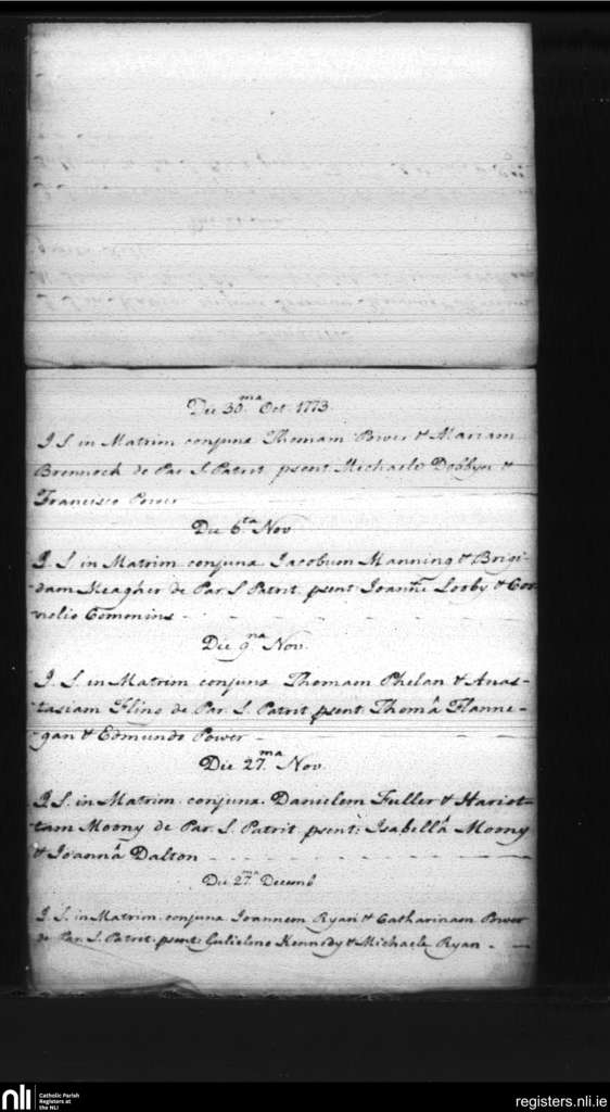 St. Patrick's and St. Olaf's, Waterford city; County of Waterford; Diocese of Waterford and Lismore. Marriages, Oct. 1773 to Dec. 1773