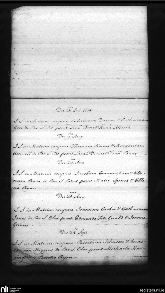 St. Patrick's and St. Olaf's, Waterford city; County of Waterford; Diocese of Waterford and Lismore. Marriages, July 1774 to Sep. 1774