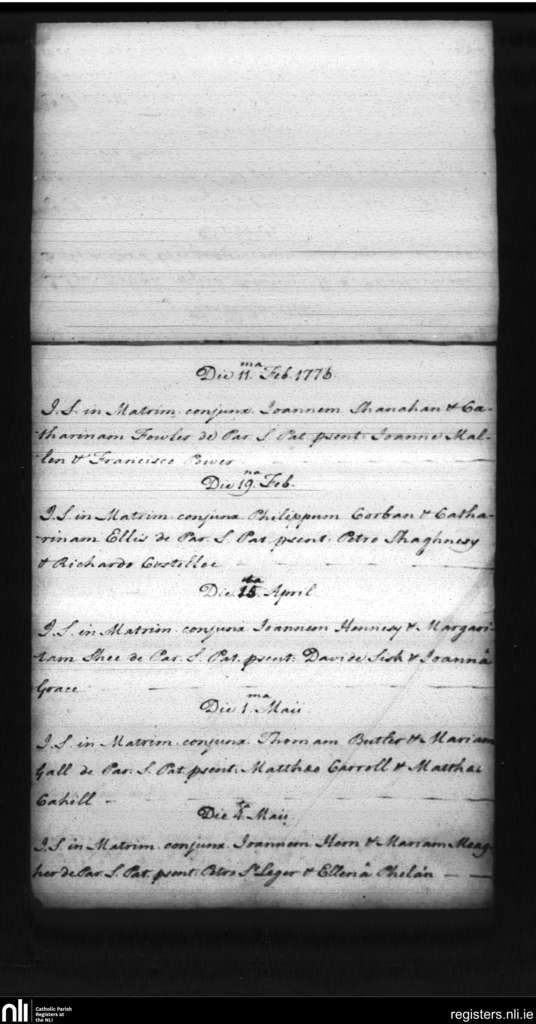 St. Patrick's and St. Olaf's, Waterford city; County of Waterford; Diocese of Waterford and Lismore. Marriages, Feb. 1776 to May 1776