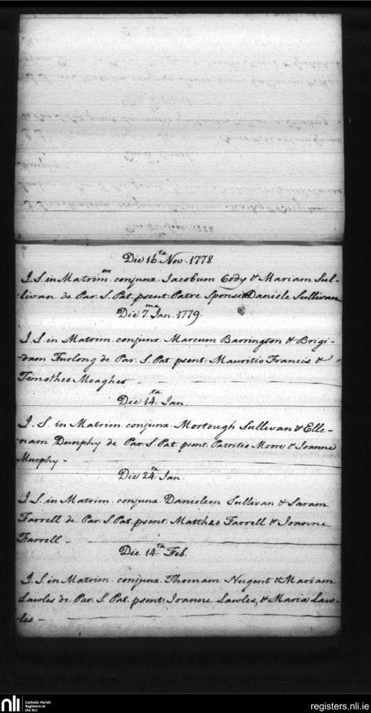 St. Patrick's and St. Olaf's, Waterford city; County of Waterford; Diocese of Waterford and Lismore. Marriages, Nov. 1778 to Feb. 1779