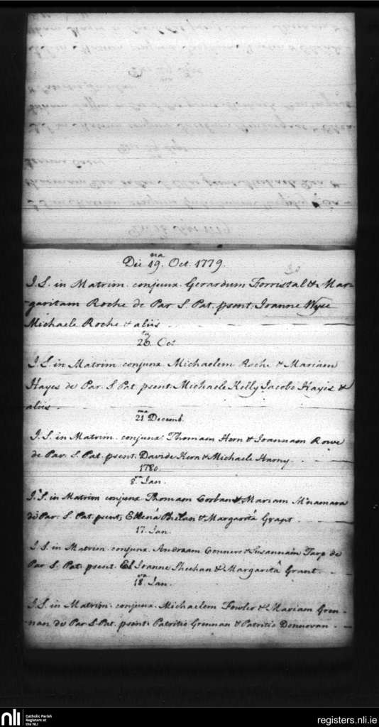 St. Patrick's and St. Olaf's, Waterford city; County of Waterford; Diocese of Waterford and Lismore. Marriages, Oct. 1779 to Jan. 1780