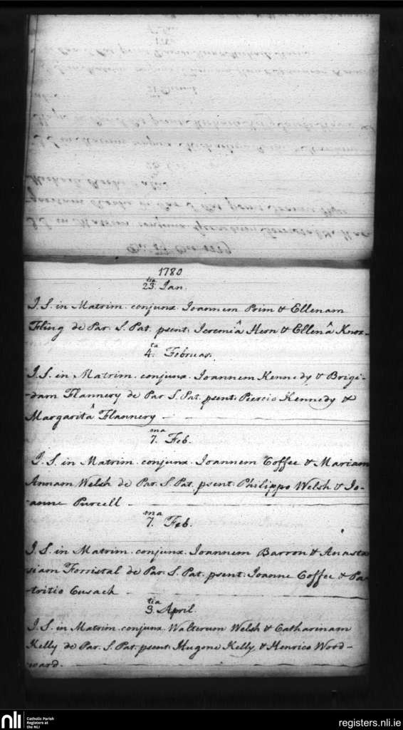 St. Patrick's and St. Olaf's, Waterford city; County of Waterford; Diocese of Waterford and Lismore. Marriages, Jan. 1780 to Apr. 1780