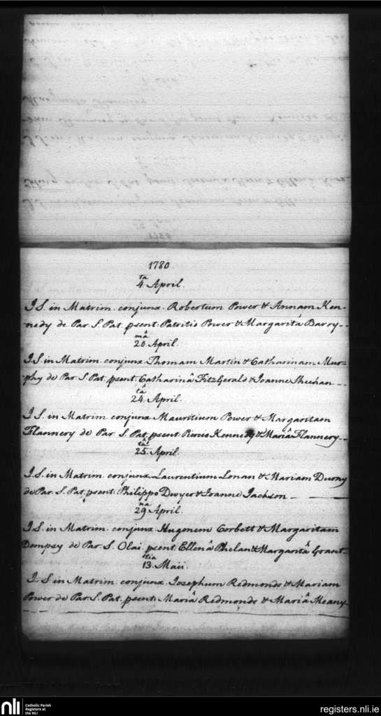St. Patrick's and St. Olaf's, Waterford city; County of Waterford; Diocese of Waterford and Lismore. Marriages, Apr. 1780 to May 1780