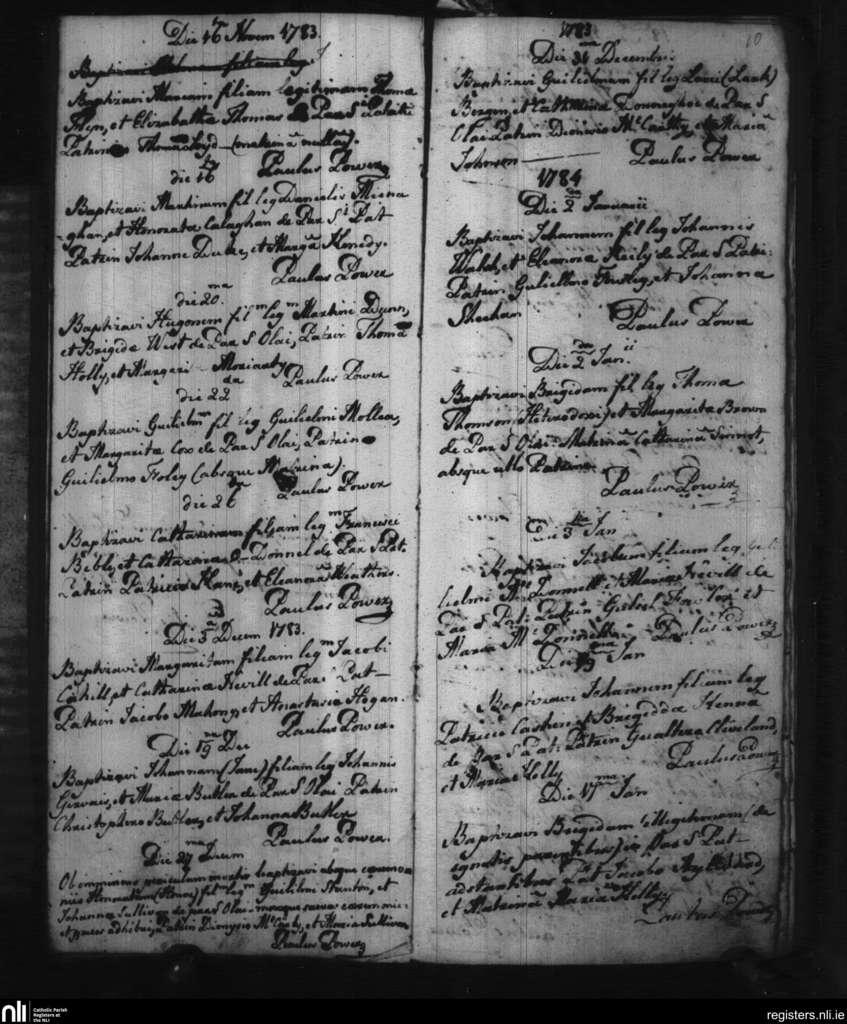 St. Patrick's and St. Olaf's, Waterford city; County of Waterford; Diocese of Waterford and Lismore. Baptisms, Nov. 1783 to Jan. 1784