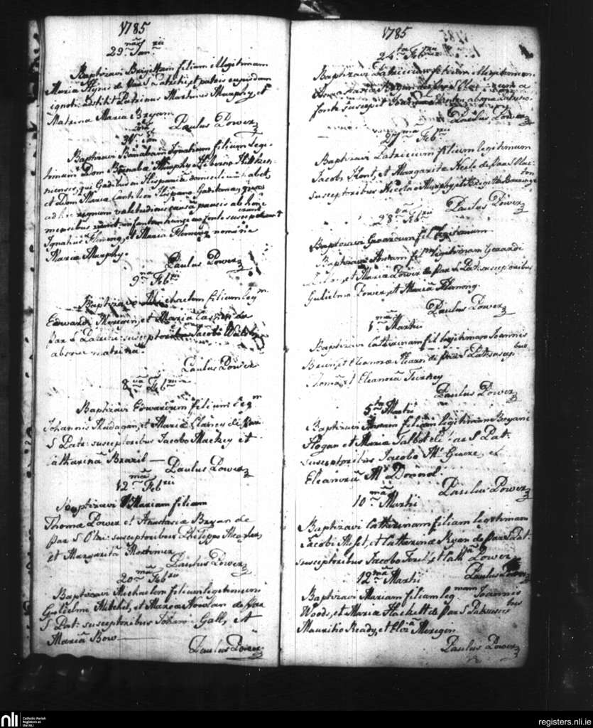 St. Patrick's and St. Olaf's, Waterford city; County of Waterford; Diocese of Waterford and Lismore. Baptisms, Jan. 1785 to Mar. 1785