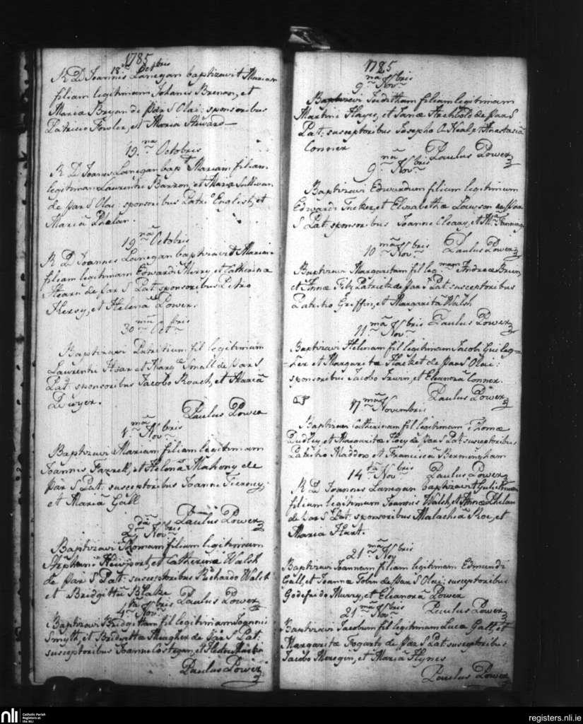 St. Patrick's and St. Olaf's, Waterford city; County of Waterford; Diocese of Waterford and Lismore. Baptisms, Oct. 1785 to Nov. 1785