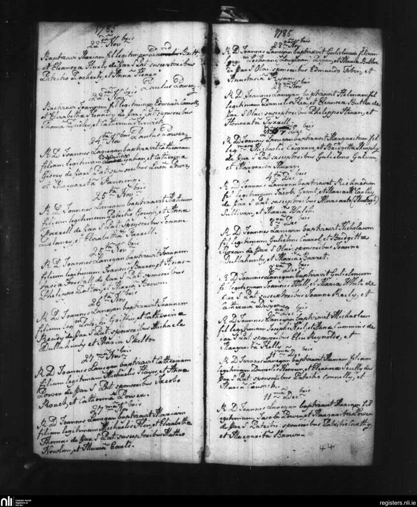 St. Patrick's and St. Olaf's, Waterford city; County of Waterford; Diocese of Waterford and Lismore. Baptisms, Nov. 1785 to Dec. 1785