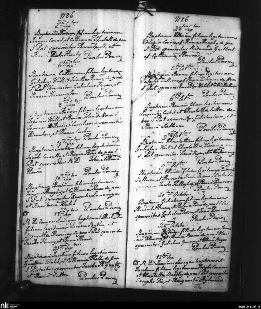 St. Patrick's and St. Olaf's, Waterford city; County of Waterford; Diocese of Waterford and Lismore. Baptisms, Sep. 1786 to Oct. 1786