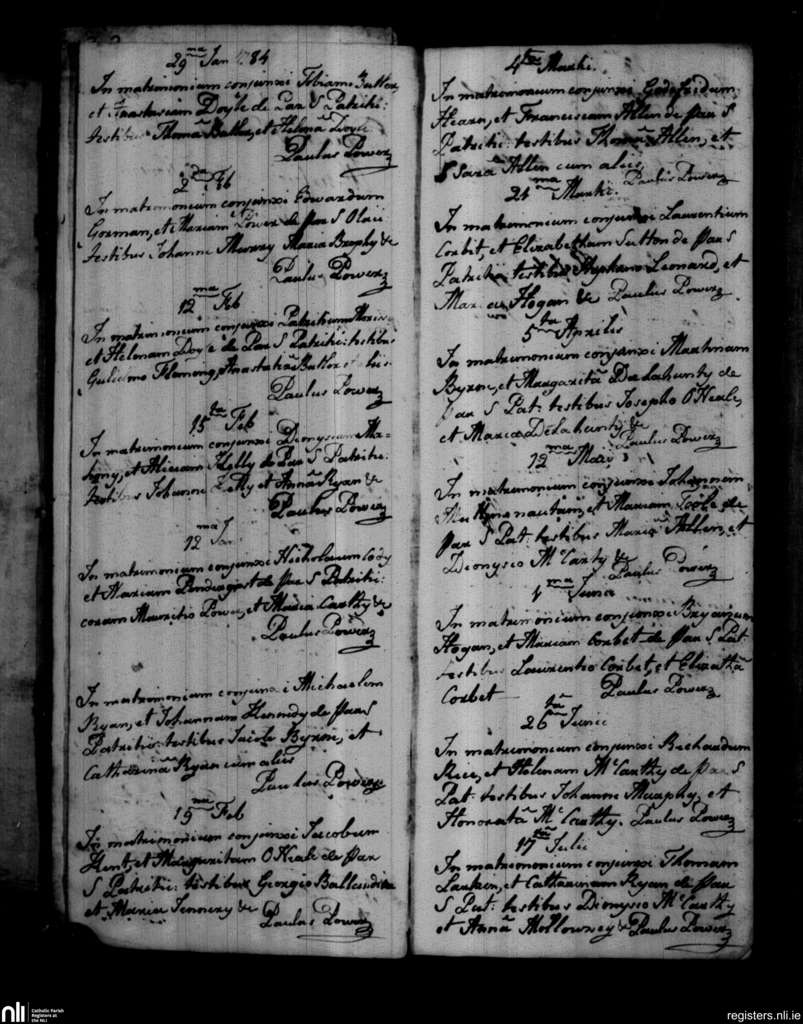 St. Patrick's and St. Olaf's, Waterford city; County of Waterford; Diocese of Waterford and Lismore. Marriages, Jan. 1784 to July 1784