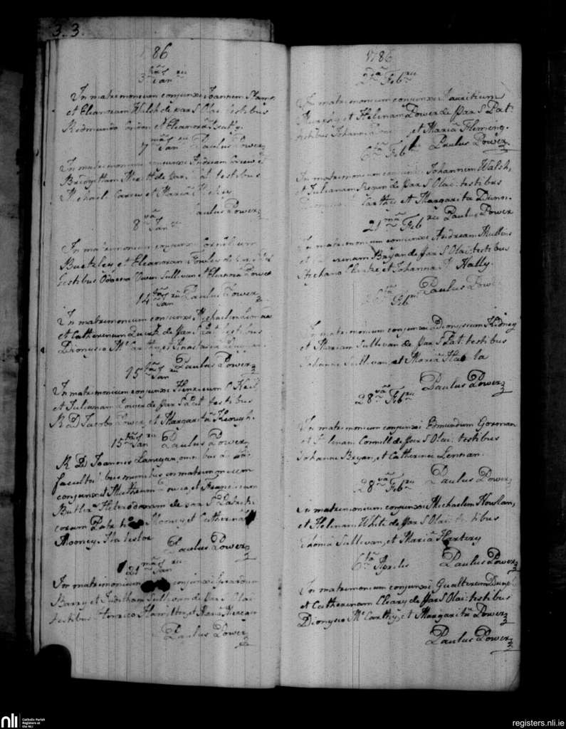 St. Patrick's and St. Olaf's, Waterford city; County of Waterford; Diocese of Waterford and Lismore. Marriages, Jan. 1786 to Apr. 1786