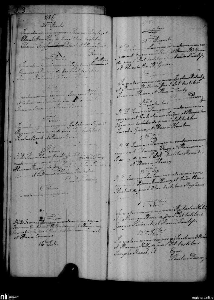 St. Patrick's and St. Olaf's, Waterford city; County of Waterford; Diocese of Waterford and Lismore. Marriages, Apr. 1786 to Nov. 1786