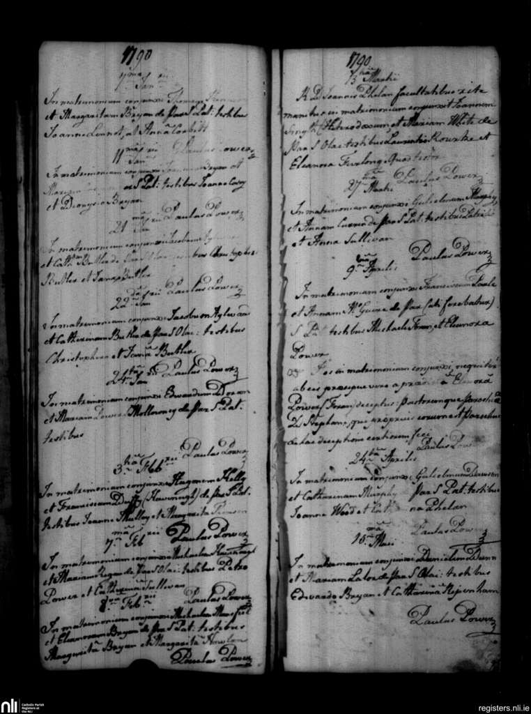 St. Patrick's and St. Olaf's, Waterford city; County of Waterford; Diocese of Waterford and Lismore. Marriages, Jan. 1790 to May 1790