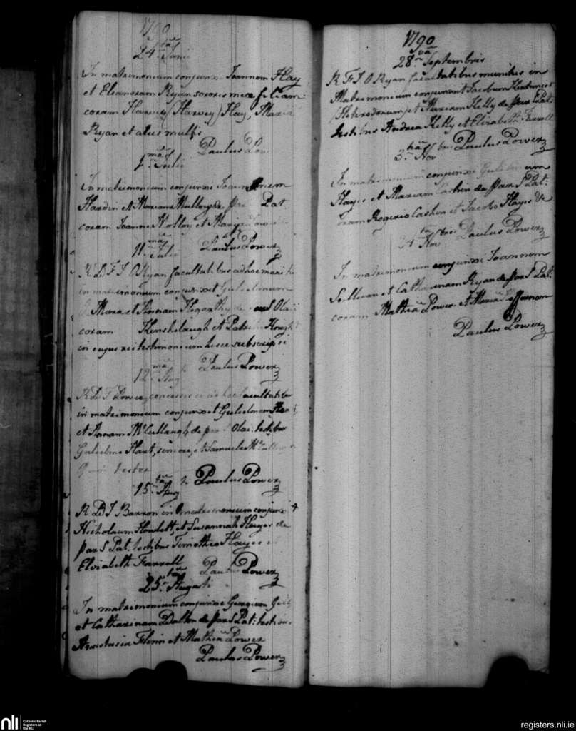 St. Patrick's and St. Olaf's, Waterford city; County of Waterford; Diocese of Waterford and Lismore. Marriages, June 1790 to Nov. 1790