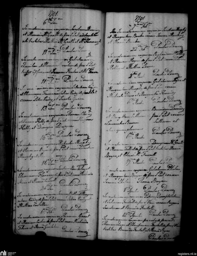 St. Patrick's and St. Olaf's, Waterford city; County of Waterford; Diocese of Waterford and Lismore. Marriages, Jan. 1791 to Apr. 1791