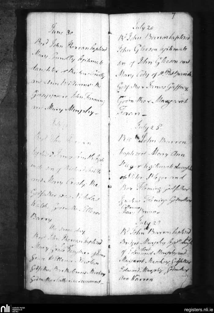 St. Patrick's and St. Olaf's, Waterford city; County of Waterford; Diocese of Waterford and Lismore. Baptisms, June 1795 to July 1795