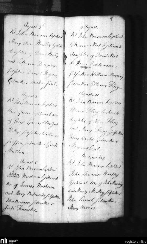 St. Patrick's and St. Olaf's, Waterford city; County of Waterford; Diocese of Waterford and Lismore. Baptisms, Aug. 1795