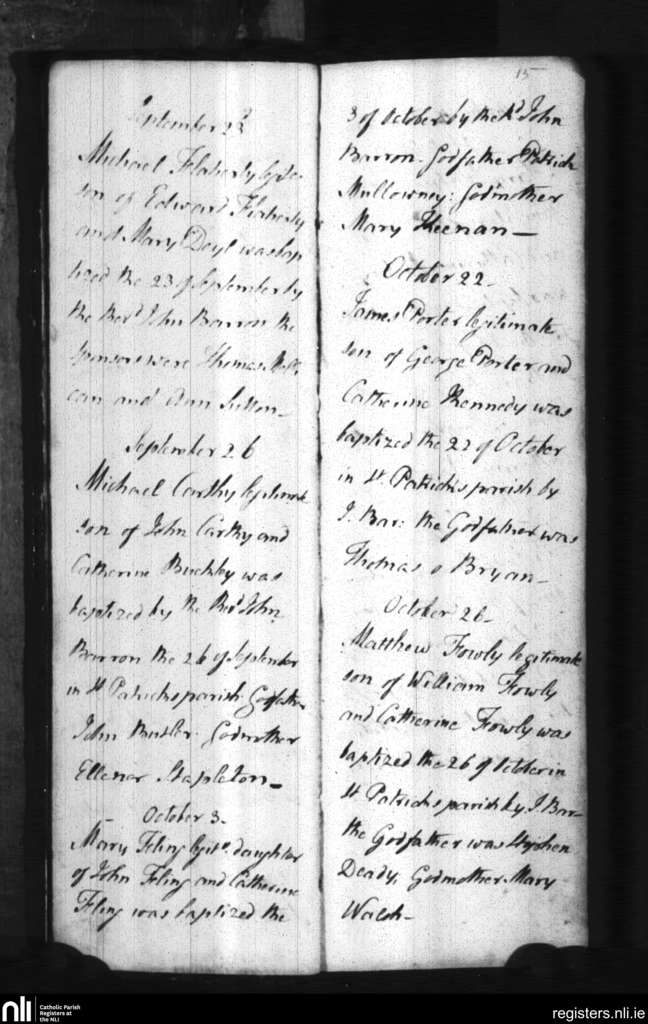 St. Patrick's and St. Olaf's, Waterford city; County of Waterford; Diocese of Waterford and Lismore. Baptisms, Sep. 1795 to Oct. 1795