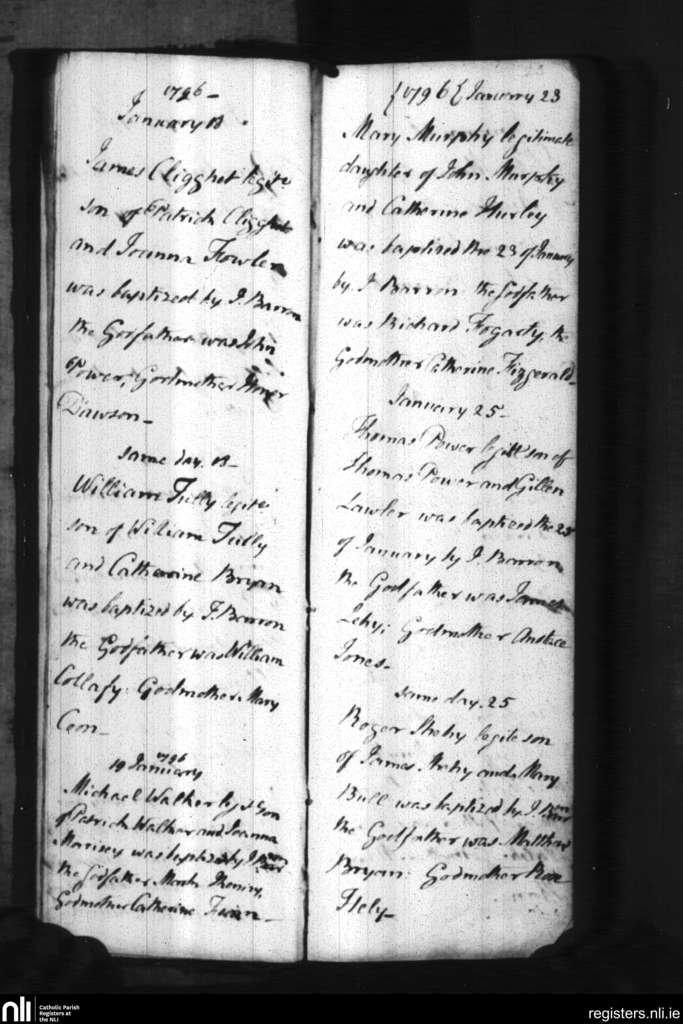 St. Patrick's and St. Olaf's, Waterford city; County of Waterford; Diocese of Waterford and Lismore. Baptisms, Jan. 1796
