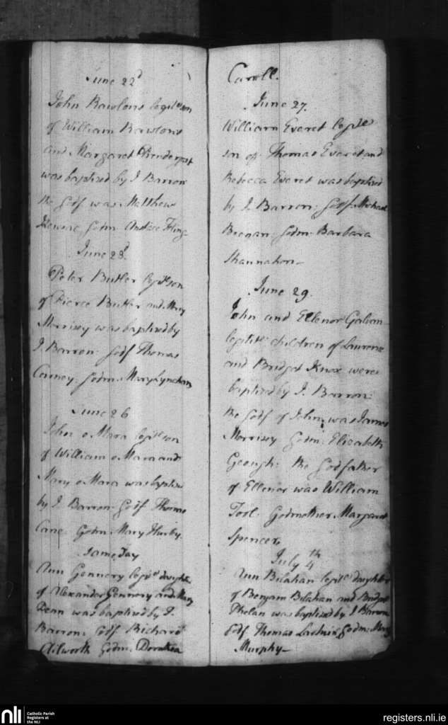 St. Patrick's and St. Olaf's, Waterford city; County of Waterford; Diocese of Waterford and Lismore. Baptisms, June 1796 to July 1796