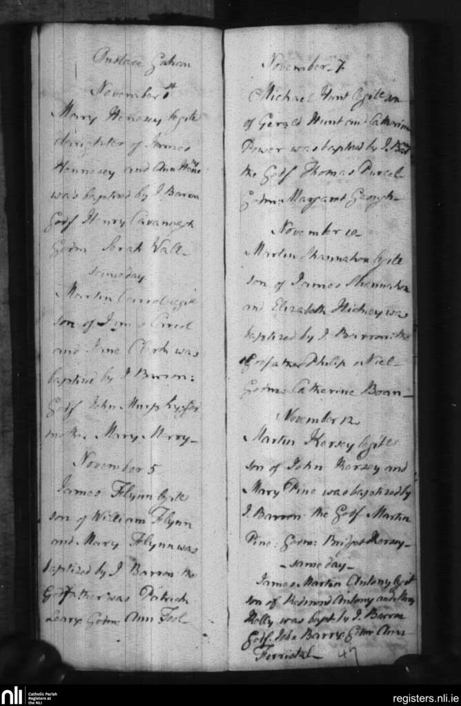 St. Patrick's and St. Olaf's, Waterford city; County of Waterford; Diocese of Waterford and Lismore. Baptisms, Oct. 1796 to Nov. 1796