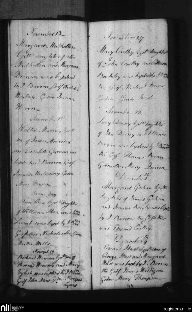 St. Patrick's and St. Olaf's, Waterford city; County of Waterford; Diocese of Waterford and Lismore. Baptisms, Nov. 1796 to Dec. 1796