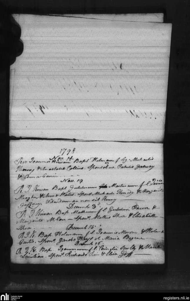 St. Patrick's and St. Olaf's, Waterford city; County of Waterford; Diocese of Waterford and Lismore. Baptisms, Nov. 1798 to Dec. 1798