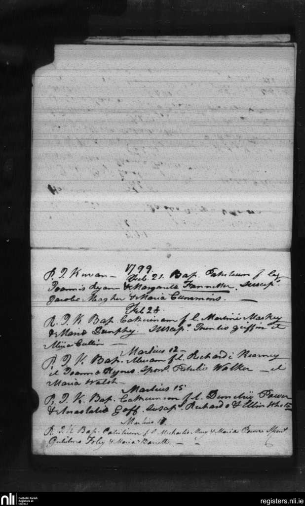 St. Patrick's and St. Olaf's, Waterford city; County of Waterford; Diocese of Waterford and Lismore. Baptisms, Feb. 1799 to Mar. 1799