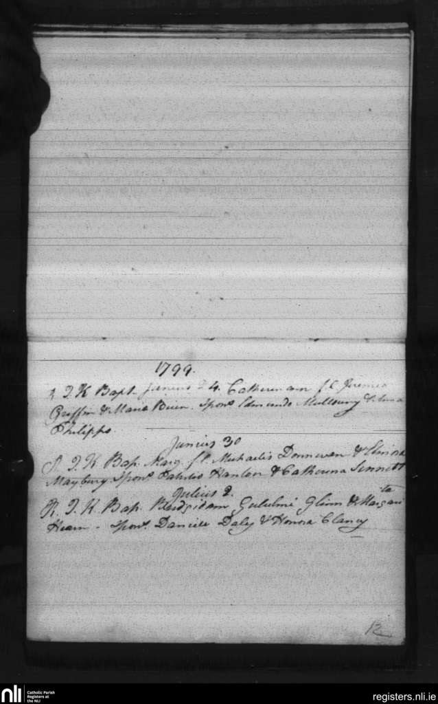 St. Patrick's and St. Olaf's, Waterford city; County of Waterford; Diocese of Waterford and Lismore. Baptisms, June 1799