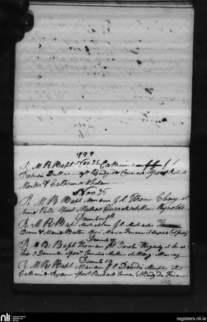 St. Patrick's and St. Olaf's, Waterford city; County of Waterford; Diocese of Waterford and Lismore. Baptisms, Nov. 1799 to Dec. 1799