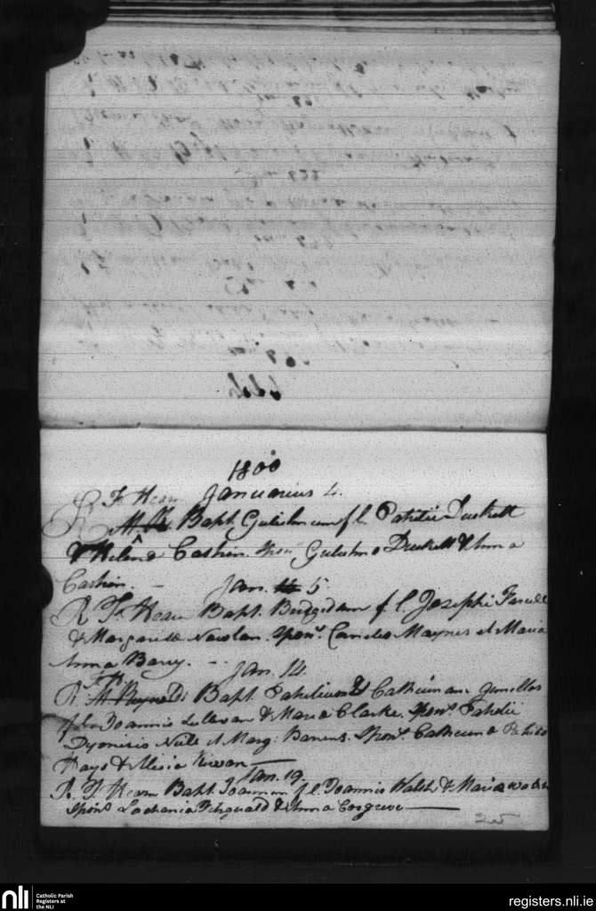 St. Patrick's and St. Olaf's, Waterford city; County of Waterford; Diocese of Waterford and Lismore. Baptisms, Jan. 1800