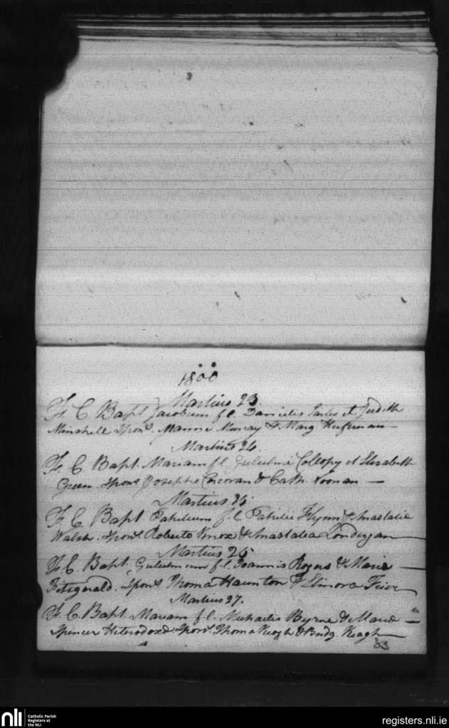St. Patrick's and St. Olaf's, Waterford city; County of Waterford; Diocese of Waterford and Lismore. Baptisms, Mar. 1800