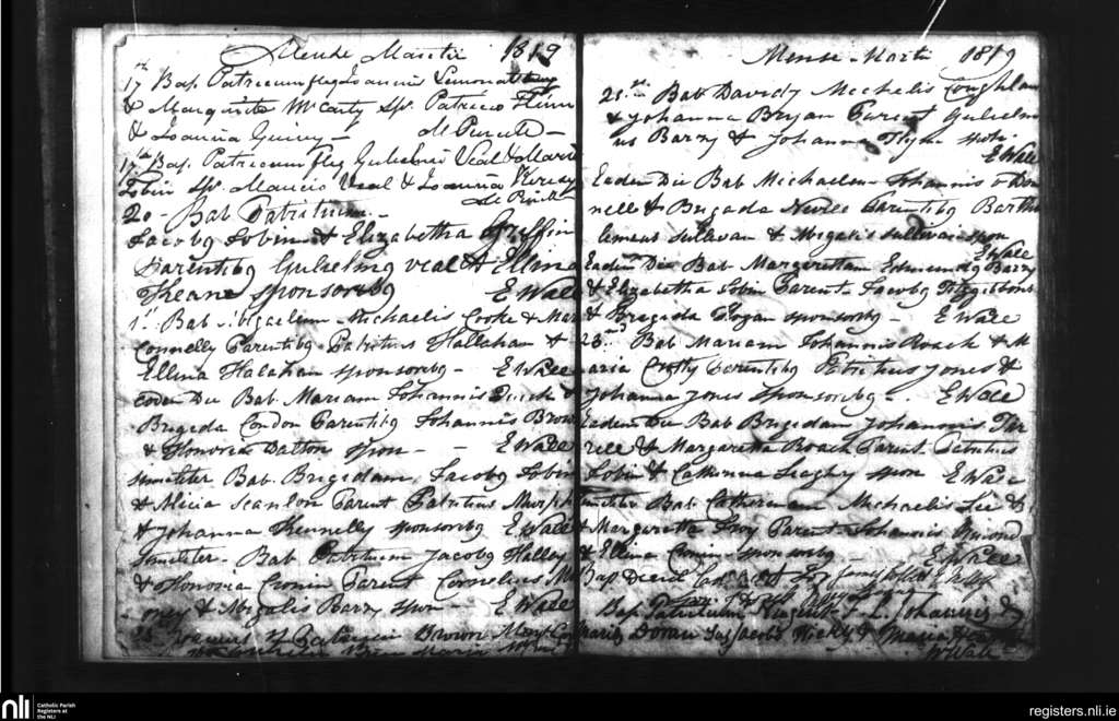 Lismore; County of Cork, Waterford; Diocese of Waterford and Lismore. Baptisms, Mar. 1819