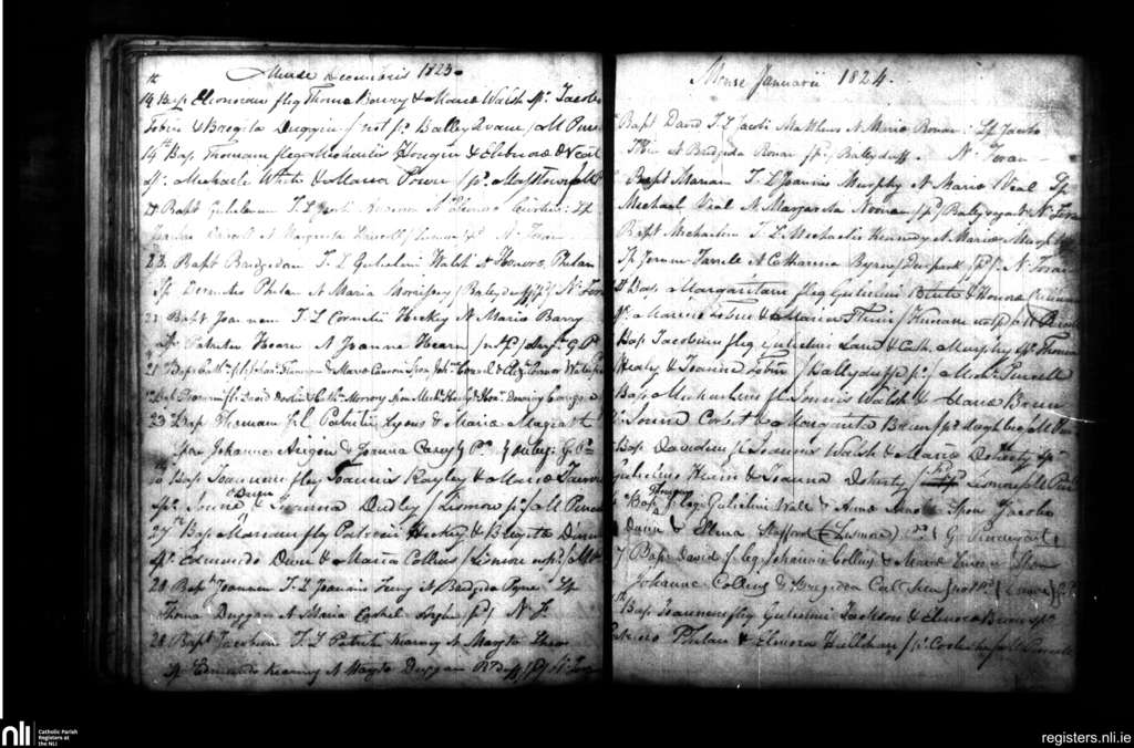 Lismore; County of Cork, Waterford; Diocese of Waterford and Lismore. Baptisms, Dec. 1823 to Jan. 1824