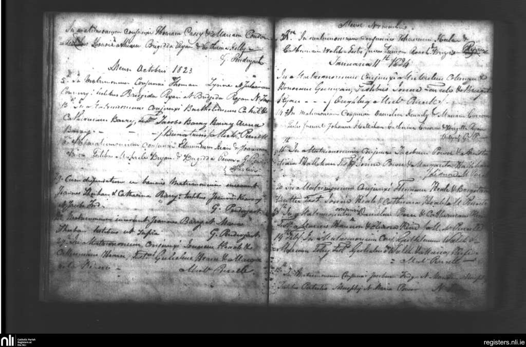 Lismore; County of Cork, Waterford; Diocese of Waterford and Lismore. Marriages, Oct. 1823 to Feb. 1824