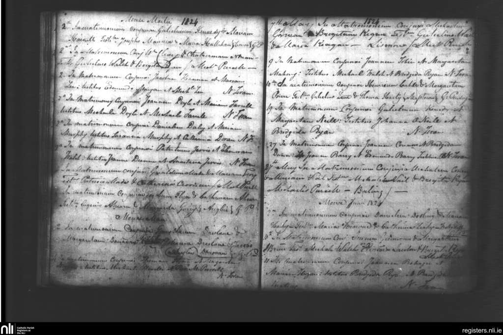 Lismore; County of Cork, Waterford; Diocese of Waterford and Lismore. Marriages, Mar. 1824 to June 1824