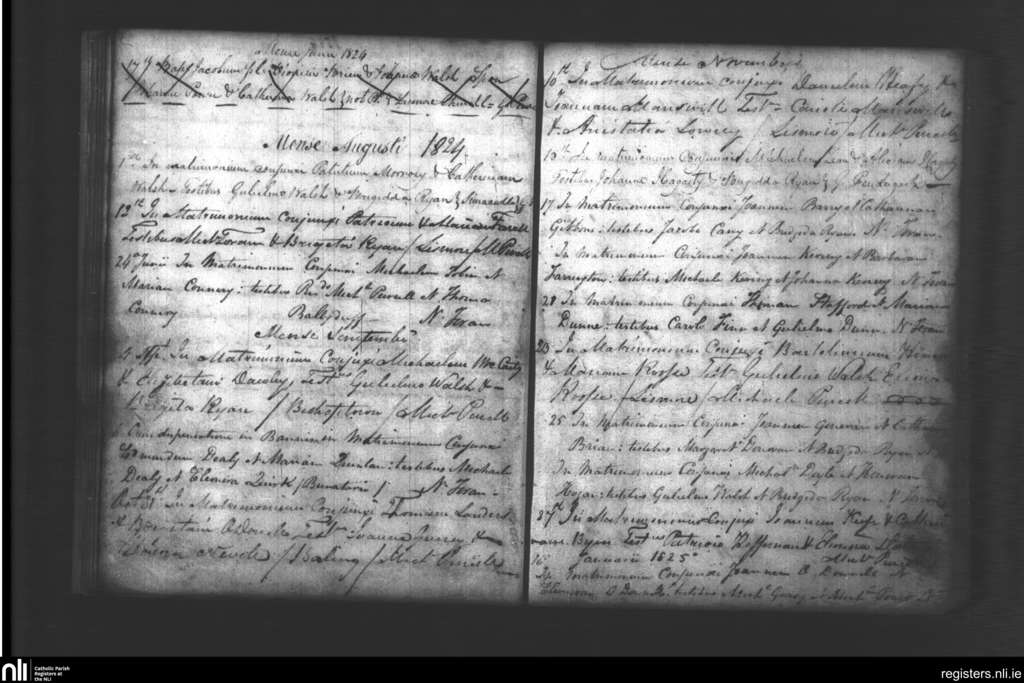 Lismore; County of Cork, Waterford; Diocese of Waterford and Lismore. Marriages, June 1824 to Jan. 1825