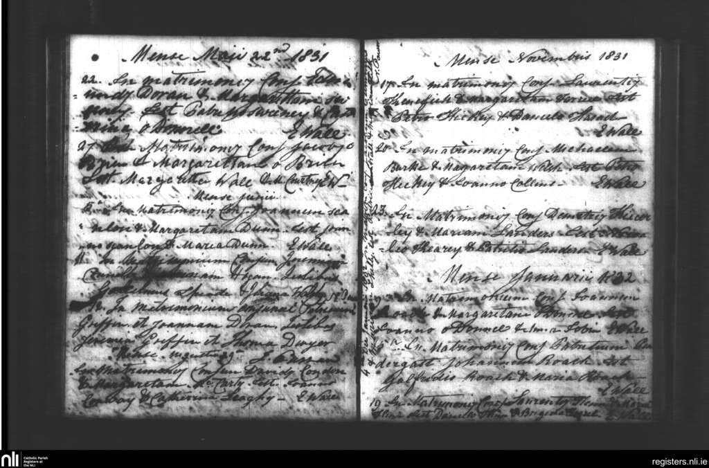 Lismore; County of Cork, Waterford; Diocese of Waterford and Lismore. Marriages, May 1831 to Jan. 1832